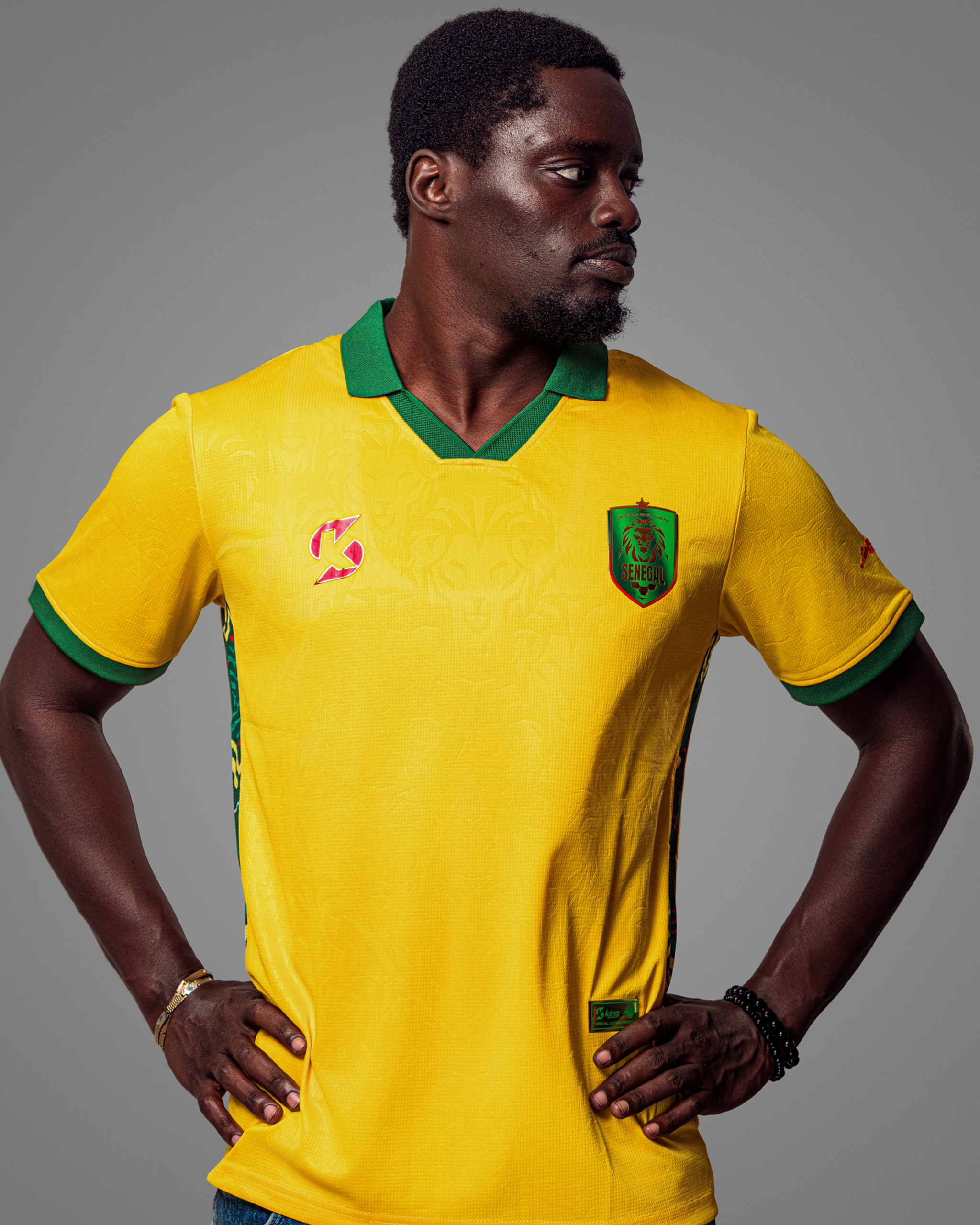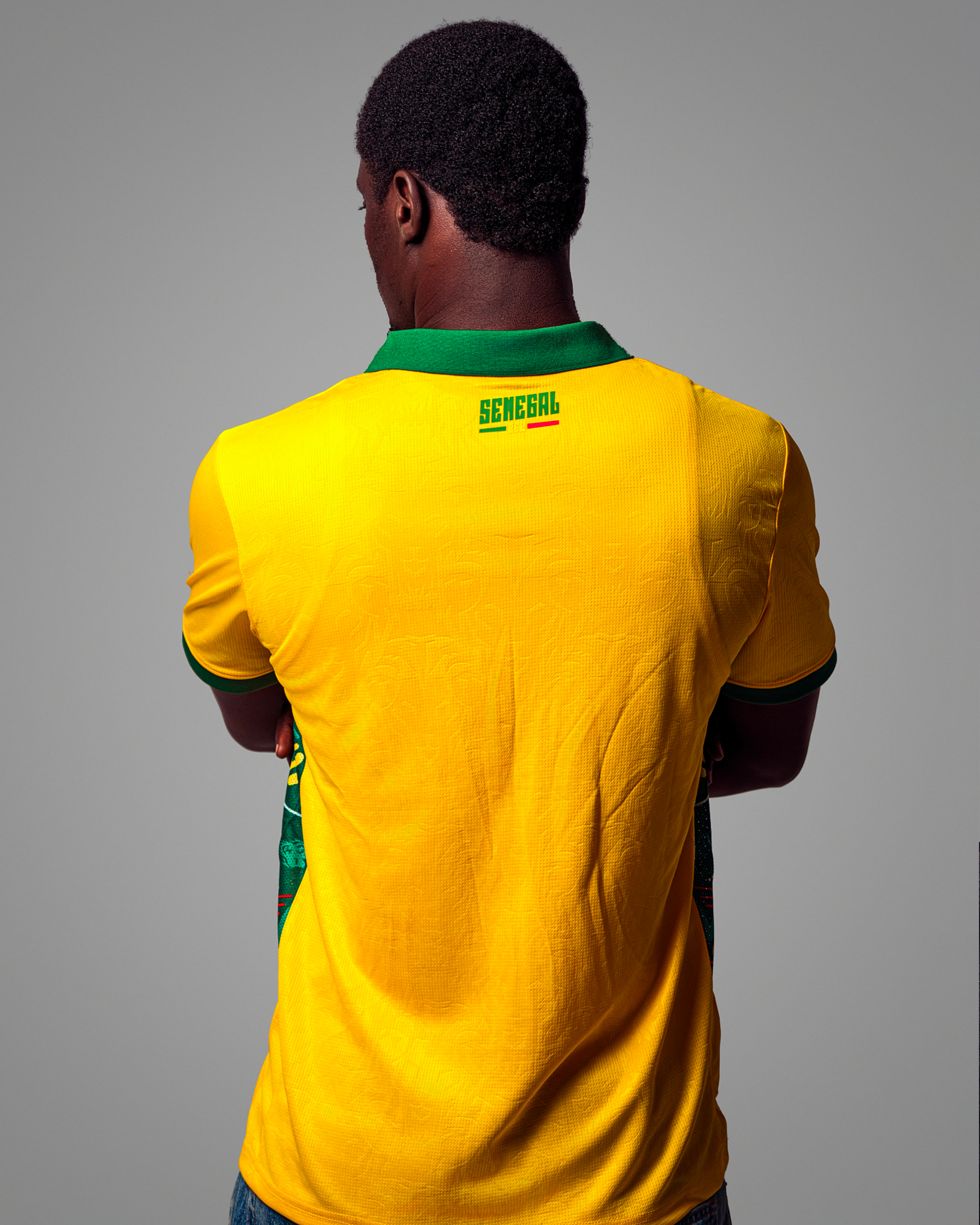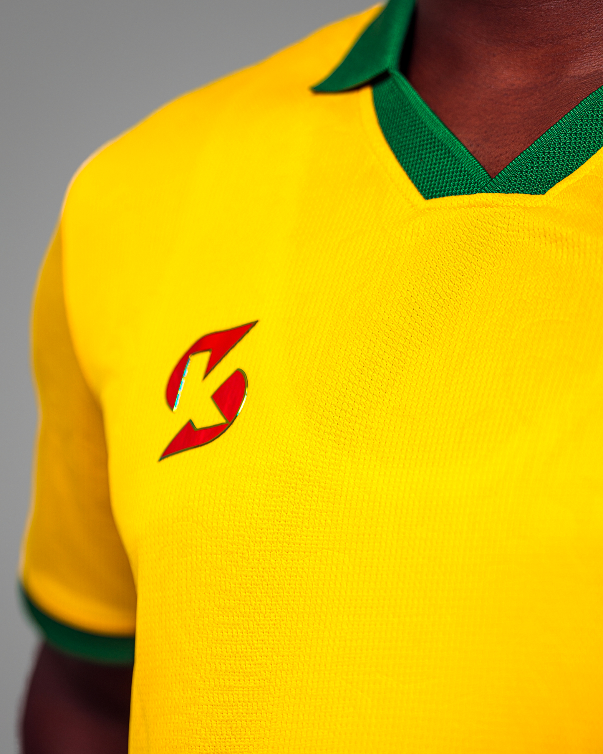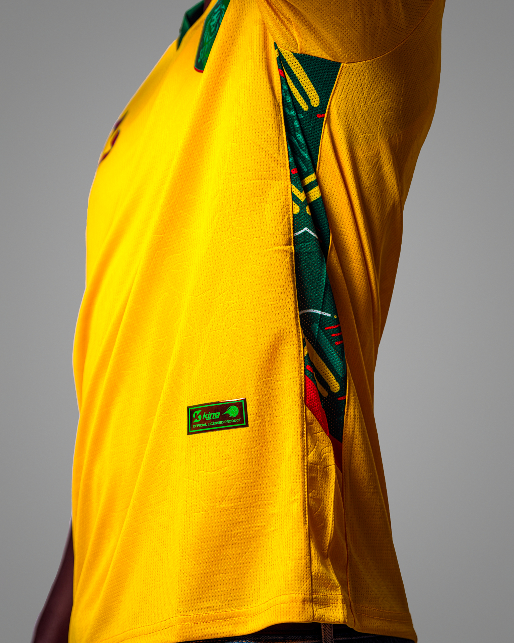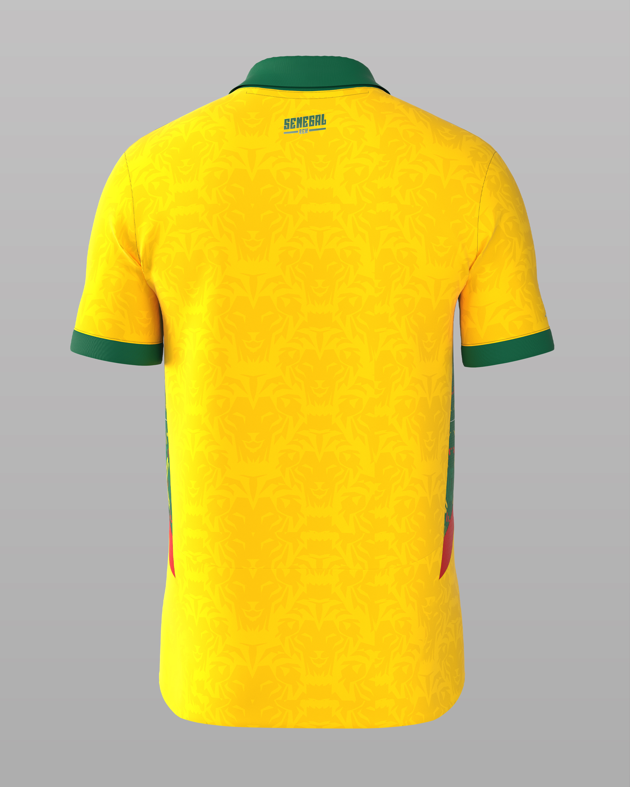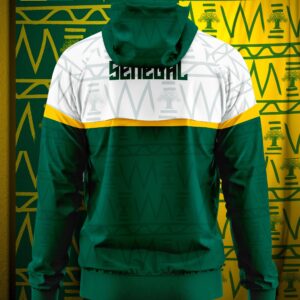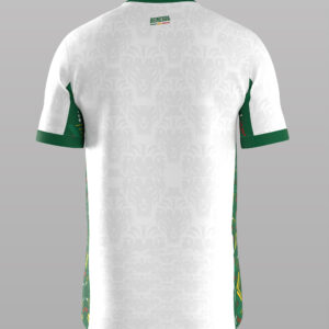 | Détails | Poignets de manches verts pour rappeler le drapeau. Un panneau latéral dynamique (vert, jaune, rouge) est subtilement intégré, se terminant par une bande rouge en bas. |